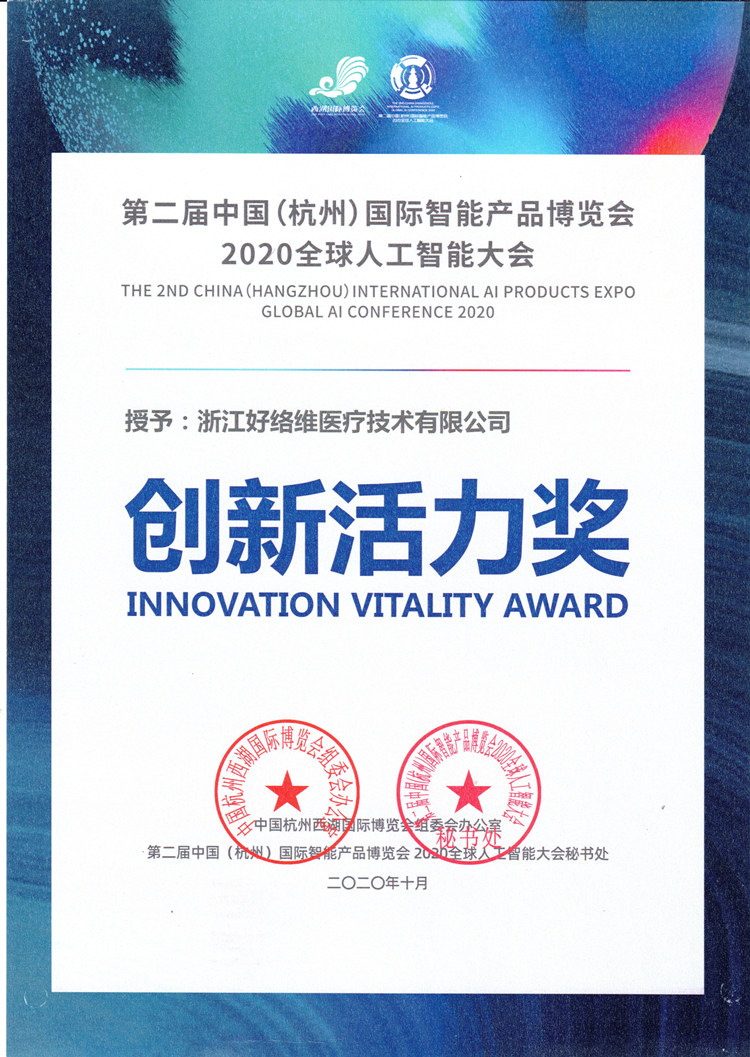 2020全球人工智能大會(huì)創(chuàng)新活力獎(jiǎng)