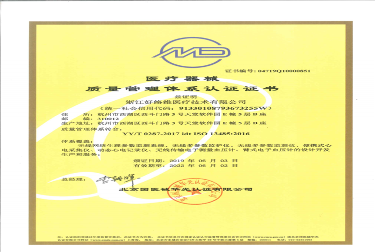 醫(yī)療器械質(zhì)量管理體系認(rèn)證證書(shū)ISO13485:2016