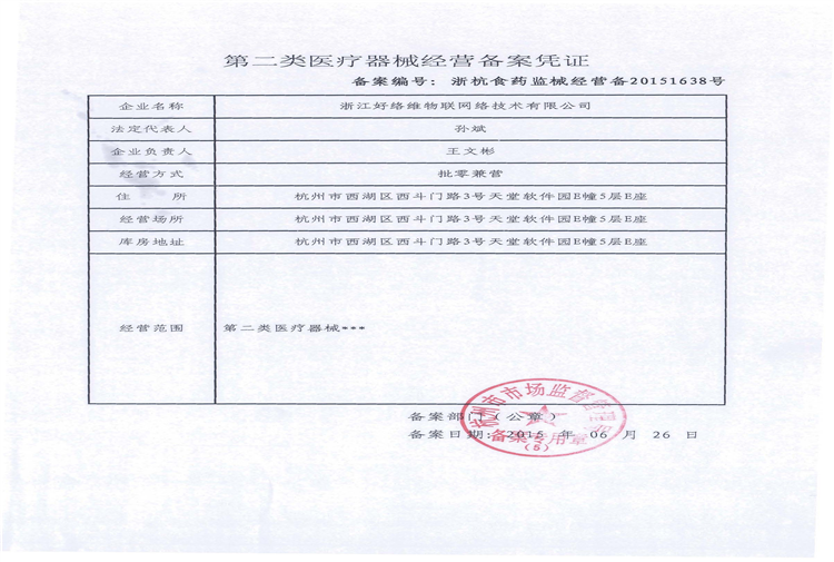 二類(lèi)醫(yī)療器械經(jīng)營(yíng)備案憑證